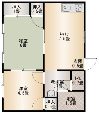 間取り | 1階 洋室4.5帖 和室6帖 | 不動産手数料59,400円 | |